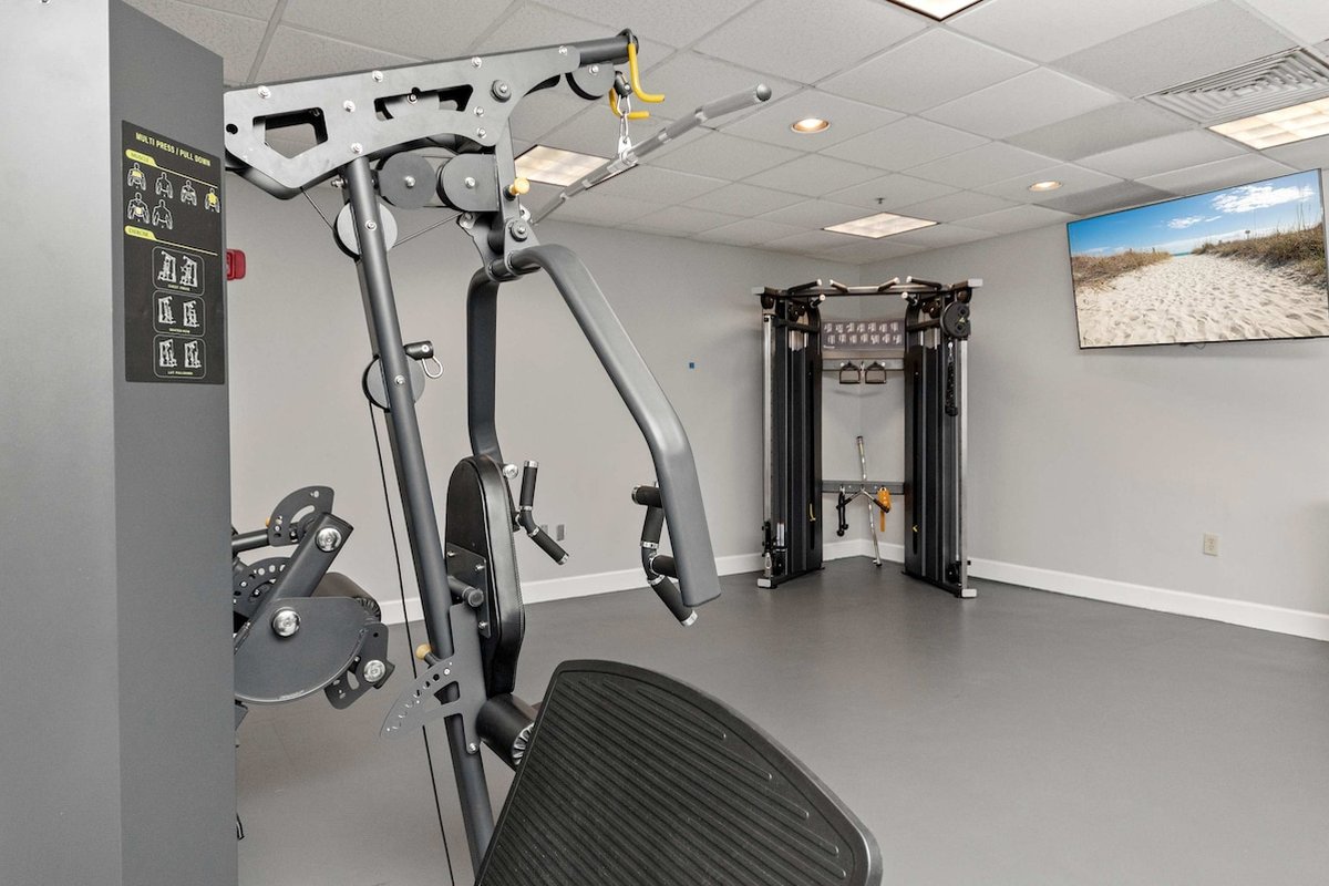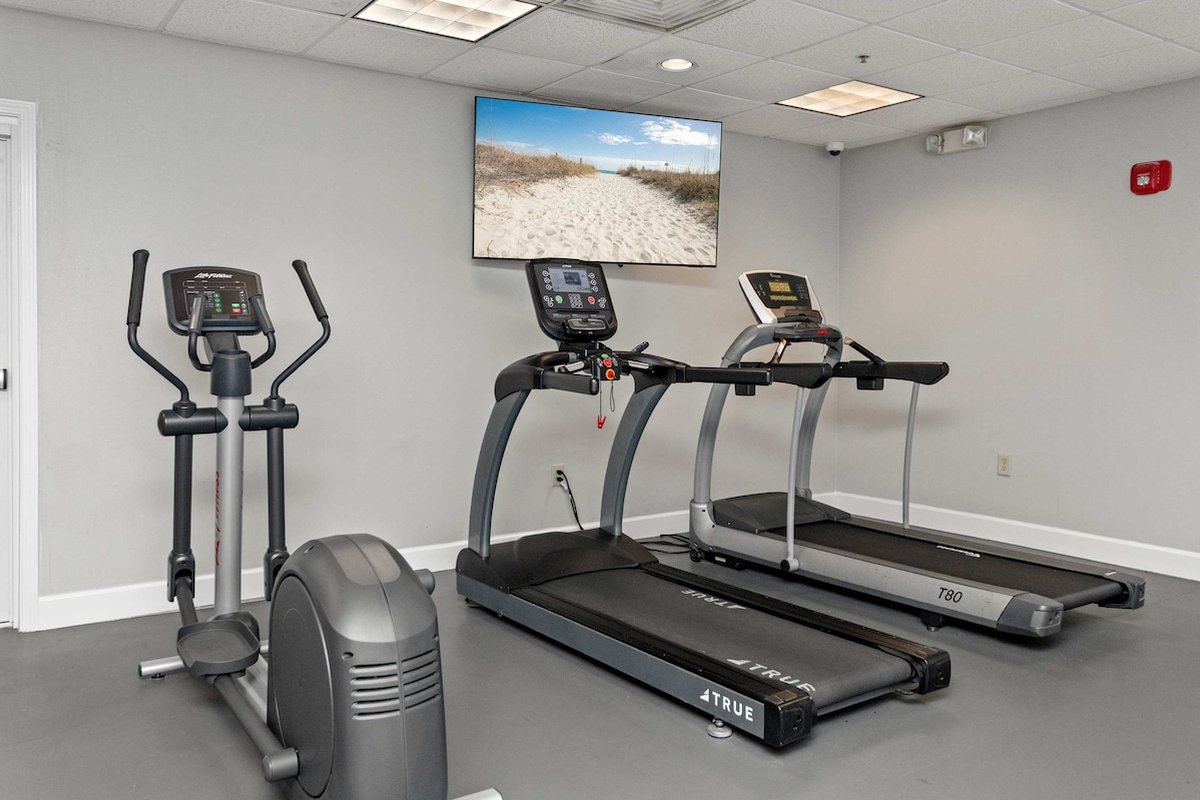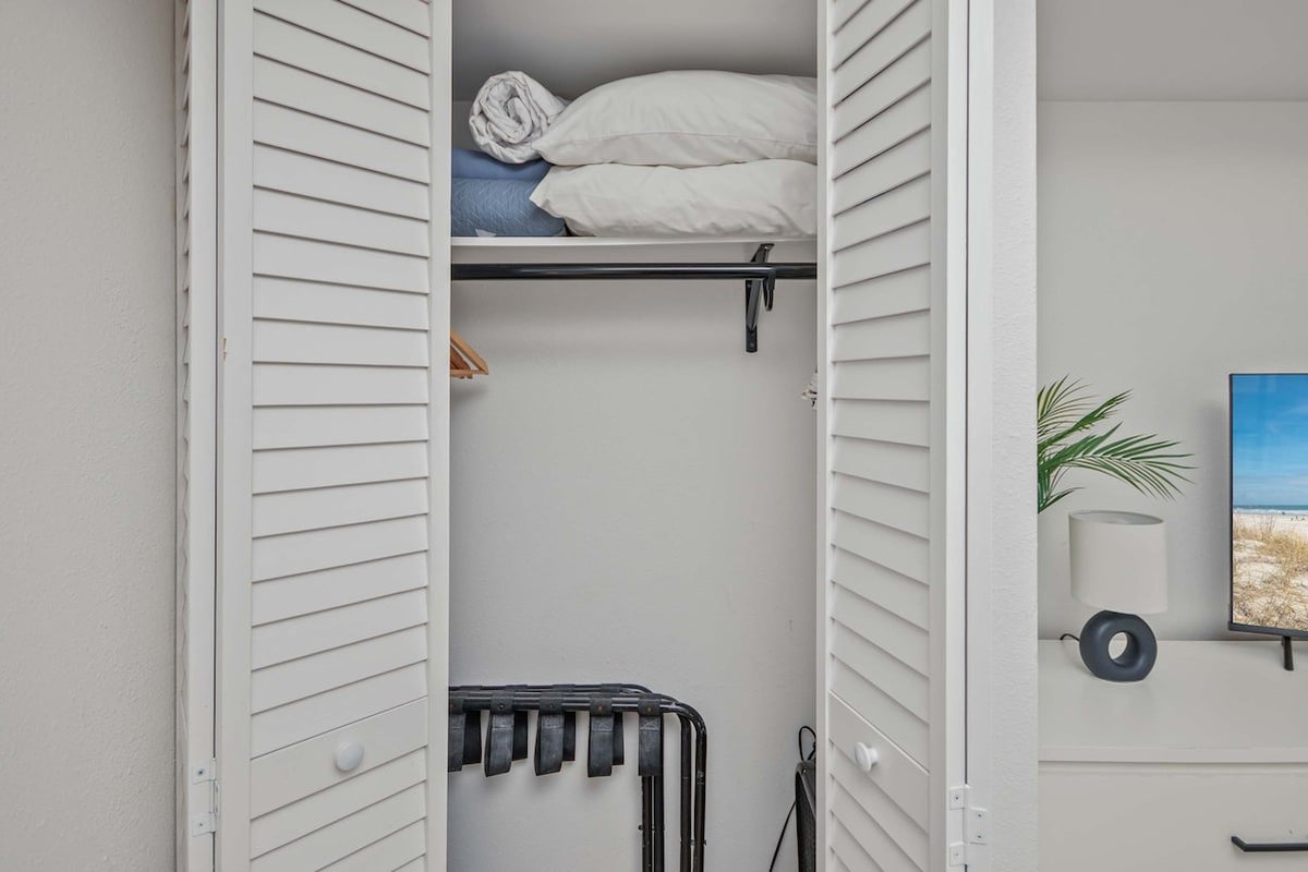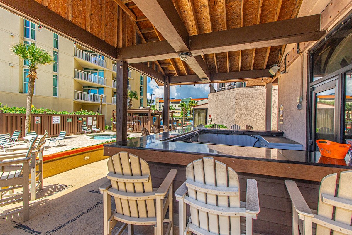 Guests have full access to the entire condo and all Beach Colony Resort amenities, including heated indoor and outdoor pools, lazy river, hot tubs, fitness center, sauna, arcade, tiki bar, restaurant, coffee shop, and direct beach access.