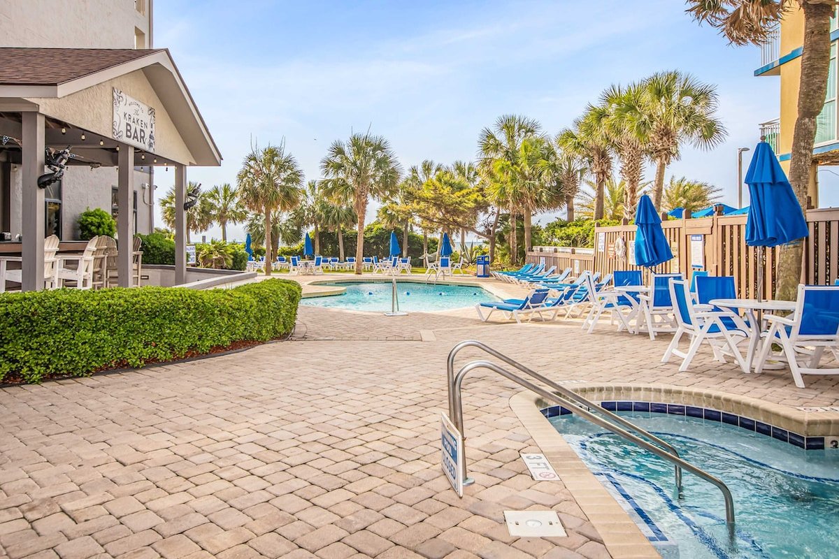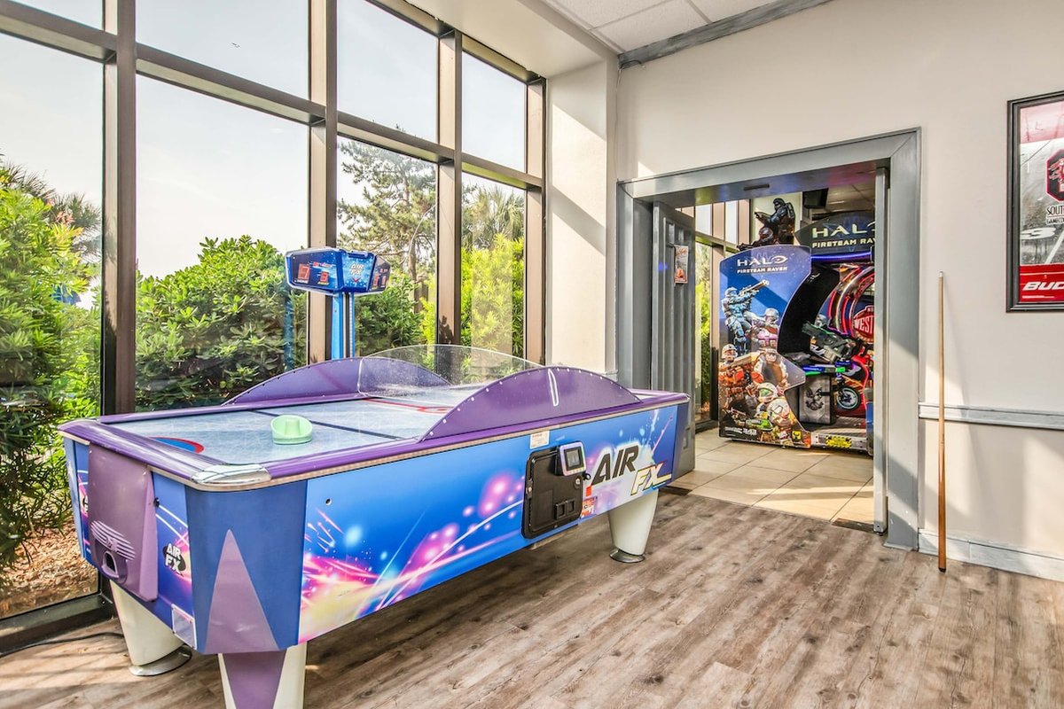 Excellent location with plenty to do whether solo, a couple, or a small family. Clean, well lit, secure, with just about anything you can ask for. VERY easy access to a very clean beach. Walk to the beach on their well lit boardwalk path. Awesome foot / leg wash as you leave the beach. Bar / restaurant was okay (food was decent, bar tenders left a little to be desired.) Pools and hot tubs were the cleanest I’ve seen. Bags (cornhole) games, hammocks, lazy river, racquetball court, small arcade area, lots to do! Would definitely book here again.
