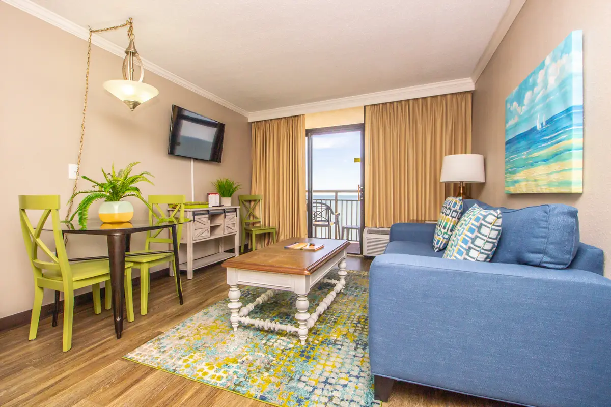 The Caravelle's block-long poolscape is one of the best in Myrtle Beach - lazy river, multiple pools, hot tubs, a kids' water area, and the Marco Polo Pool Bar all connected together. Santa Maria Restaurant on-site means you can have a nice dinner without leaving the property. The northern Myrtle Beach location keeps things relaxed while still being close to Restaurant Row and Barefoot Landing.
