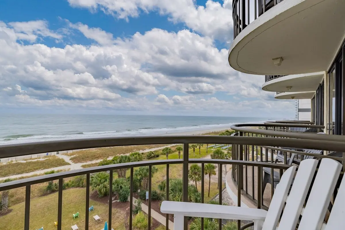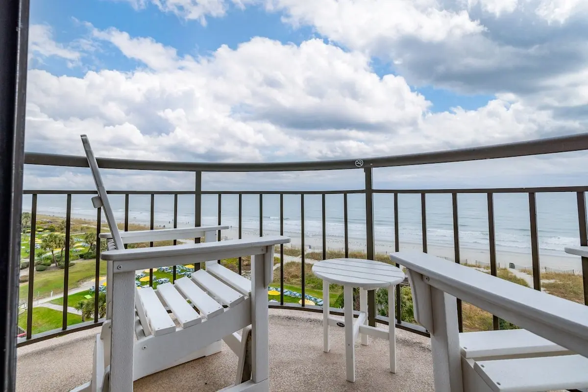 This is our fully renovated, oceanfront condo in the heart of Myrtle Beach - a place we've put real care into and love sharing with guests. Located on the sixth floor, the condo offers direct, unobstructed views of the ocean and a private balcony where you can sit back in the Adirondack gliders and watch the waves roll in.