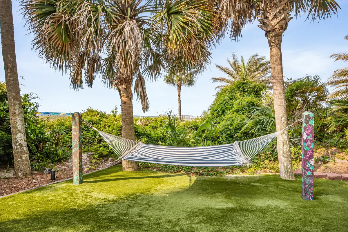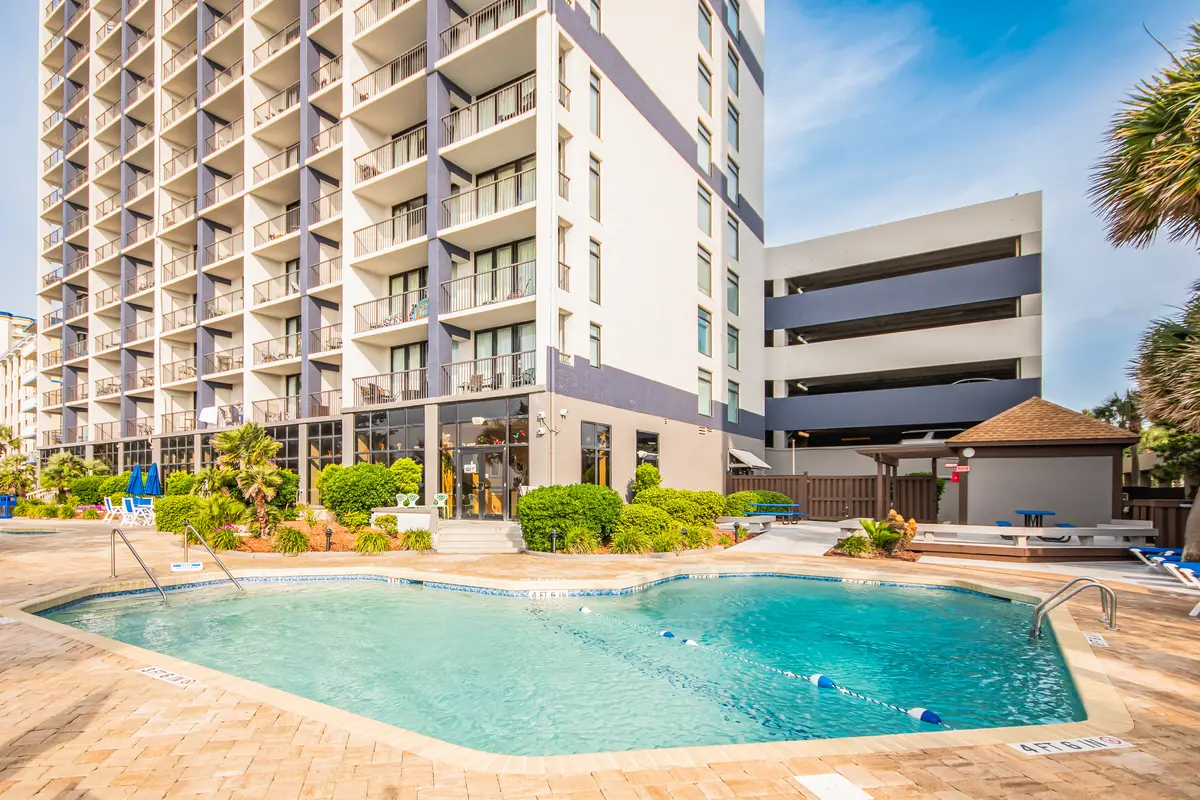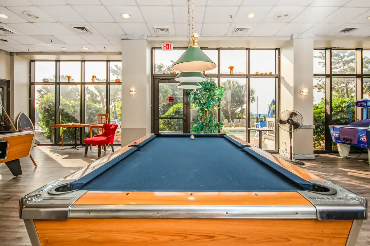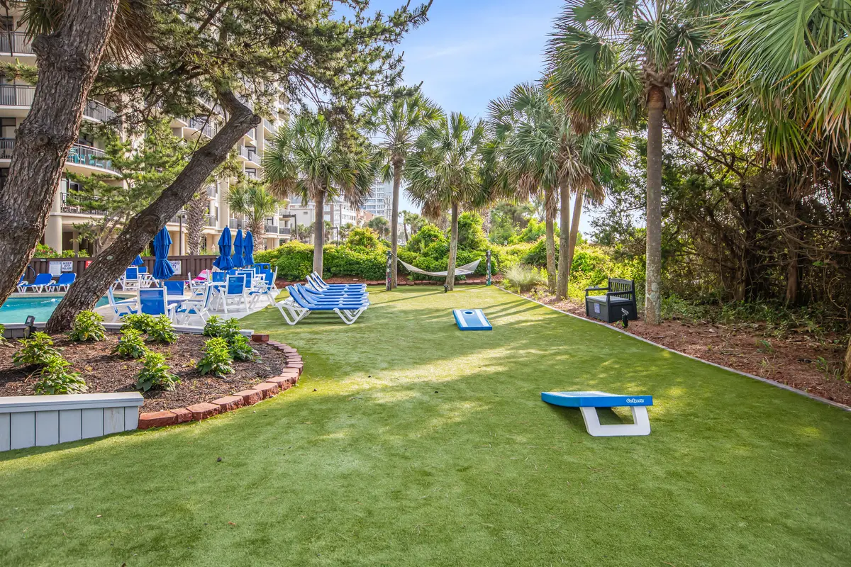 Beach Colony is one of those resorts that consistently exceeds expectations. The amenity list reads like a wish list-heated indoor and outdoor pools, lazy river, hot tubs, tiki bar, restaurant, coffee shop, fitness center, sauna, and an arcade. The landscaped grounds feature hammocks and gliders scattered throughout, which gives the whole place a relaxed, tropical feel. It's the kind of resort where you can genuinely fill an entire vacation without leaving the property, but you're also centrally located when you want to explore Myrtle Beach.