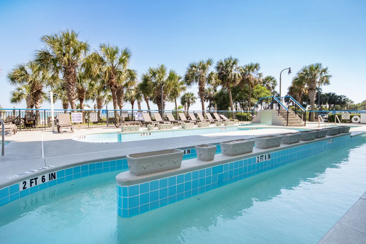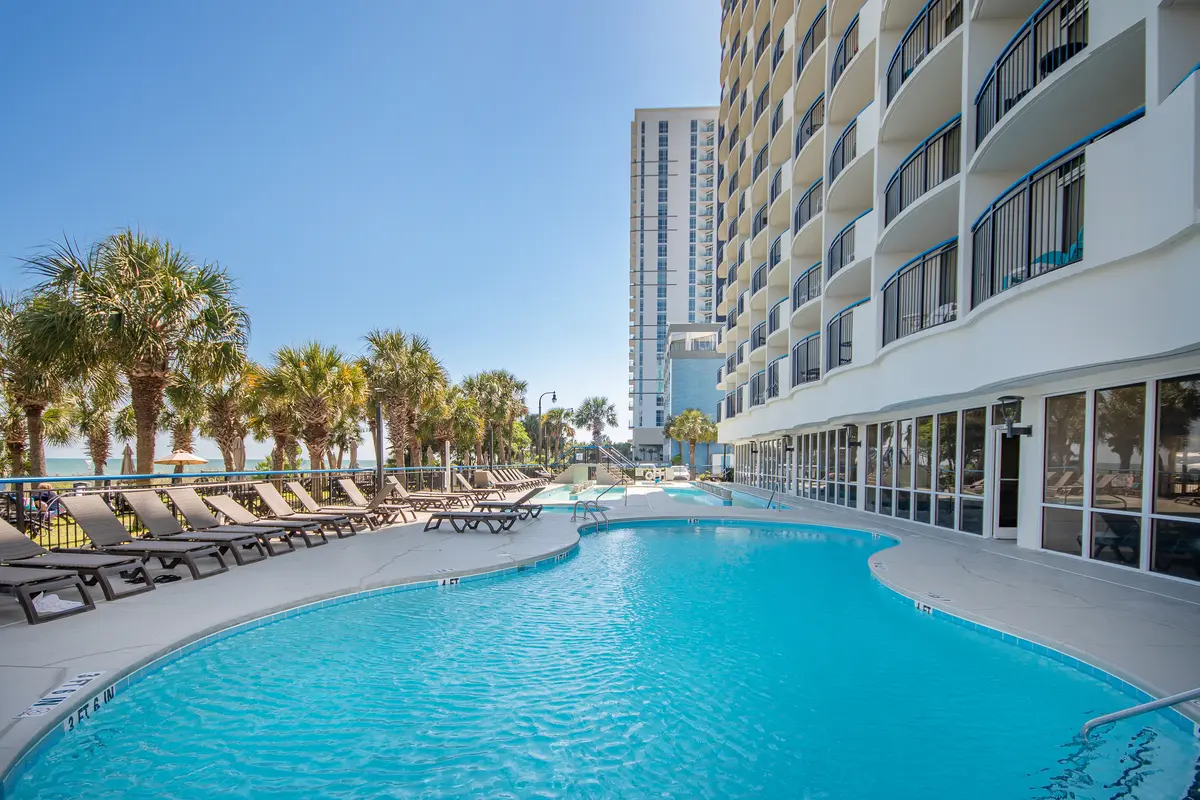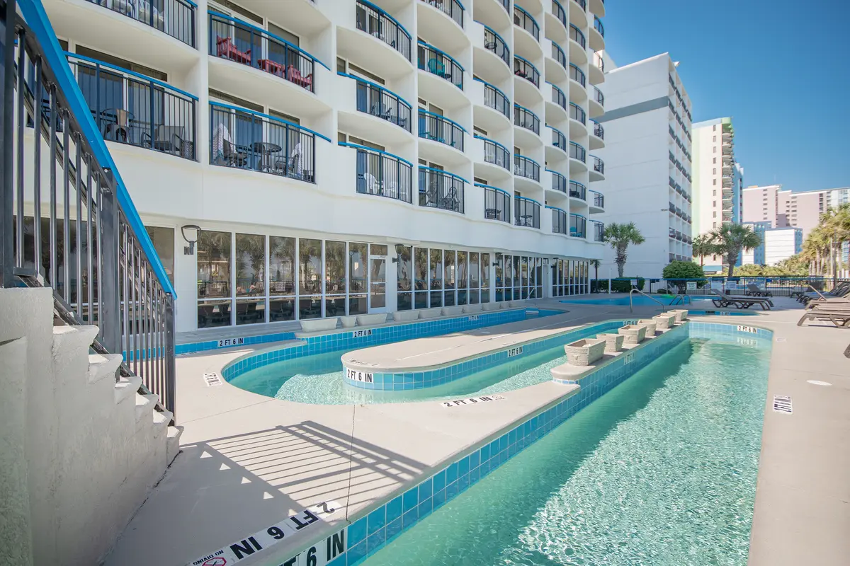 The Boardwalk Beach Resort is one of those places that feels like classic Myrtle Beach. Enjoy the fantastic walkabillity as the resort sits right in the middle of the action-walking distance to the iconic Boardwalk, SkyWheel, Convention Center, and more restaurants and bars than you could visit in a week. The resort itself has multiple outdoor pools, a lazy river, and a generous oceanfront lawn with umbrellas and loungers. It's the kind of location where you can leave your car parked for the entire trip and still have endless options at your feet.